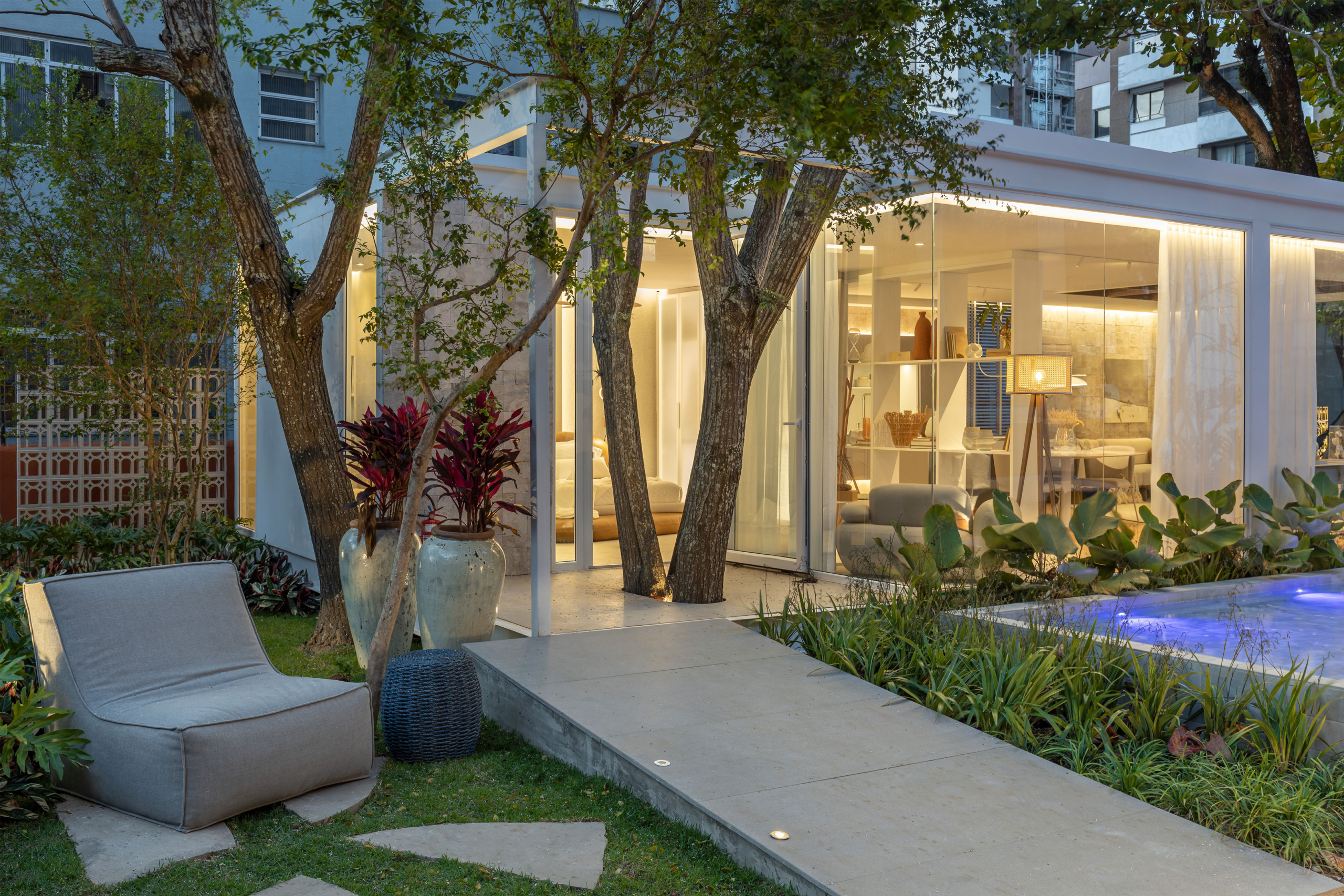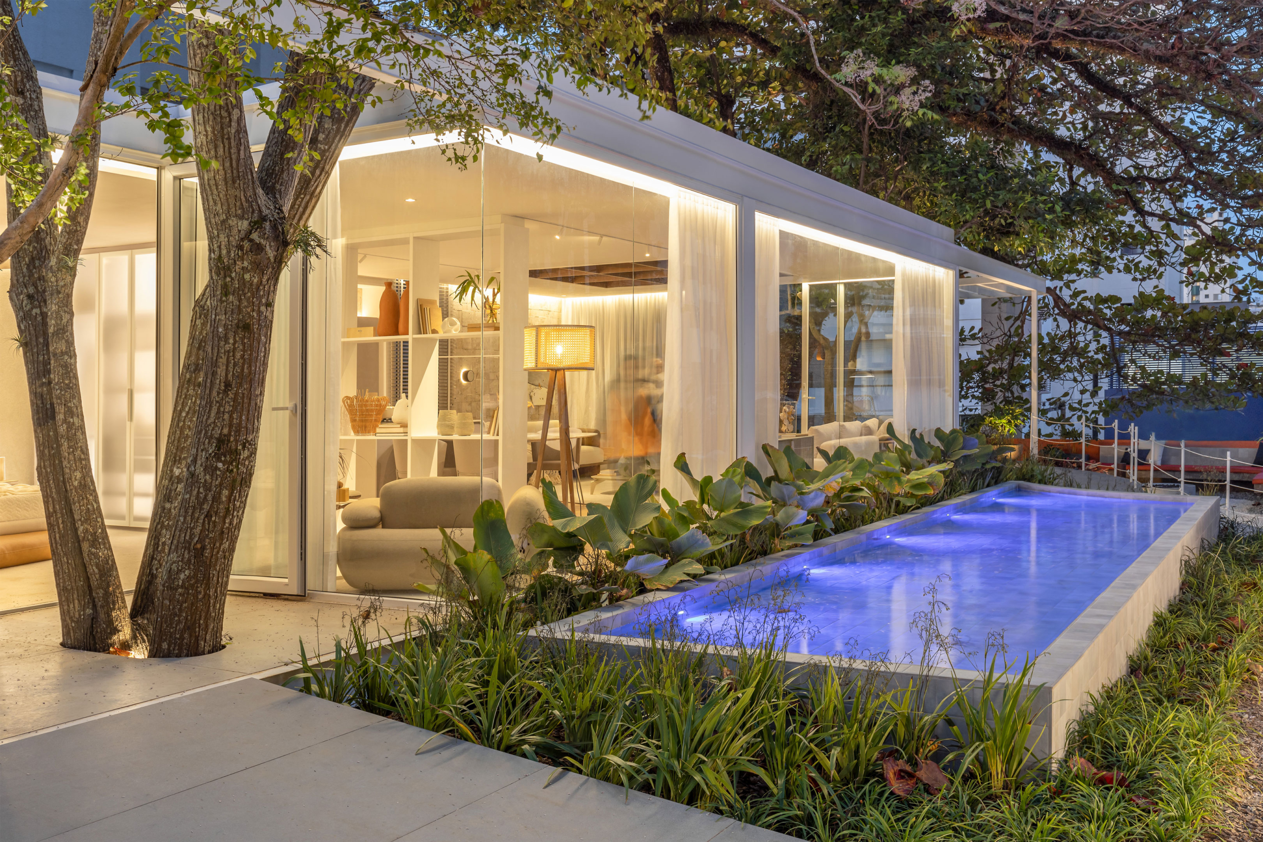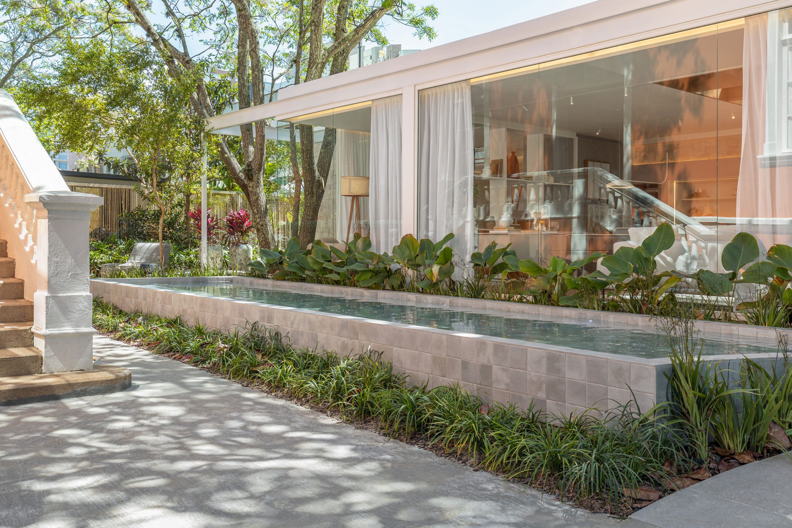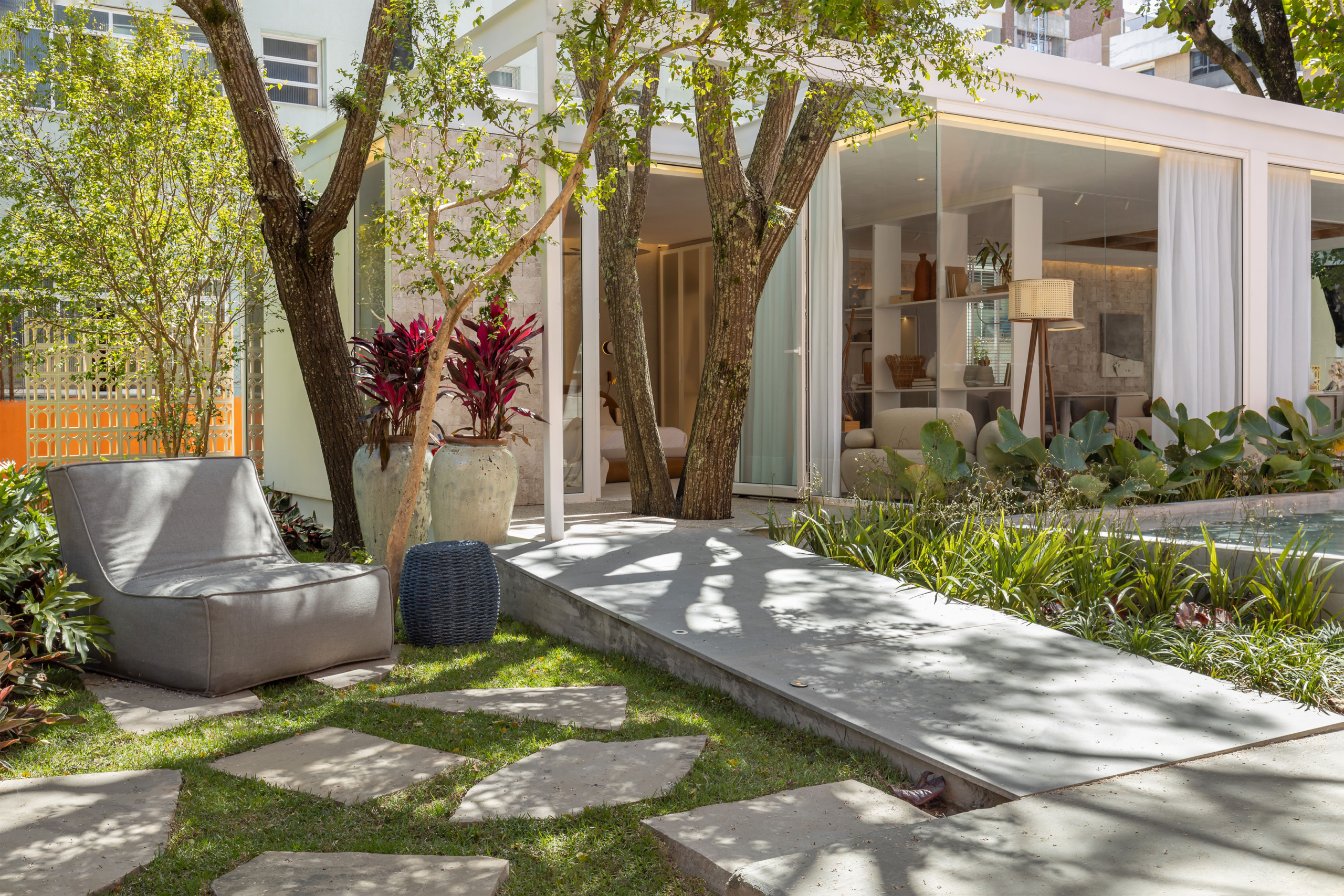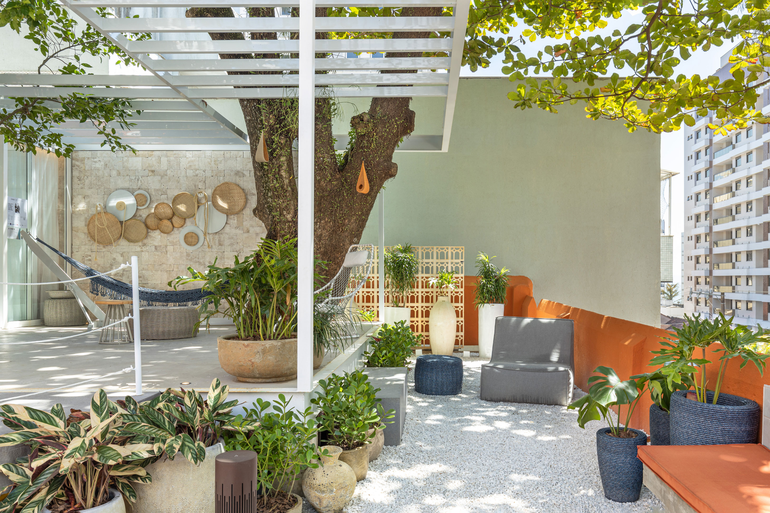 Arália, Guaimbé, Liriope verde, Calathea charuto, Dianella áurea, Cordelynes, Pleomele fita e Marantas