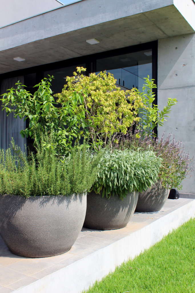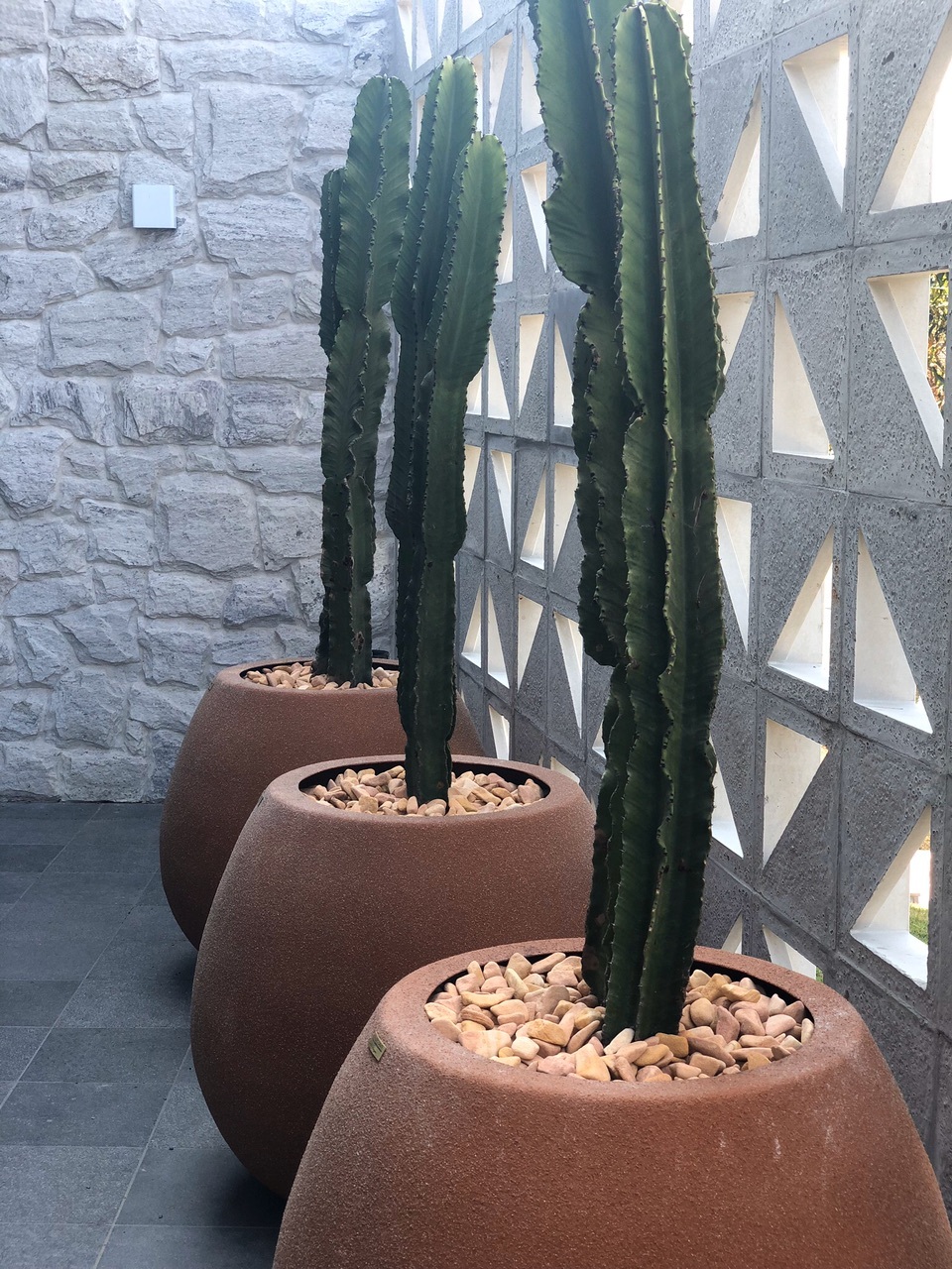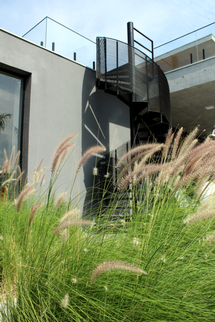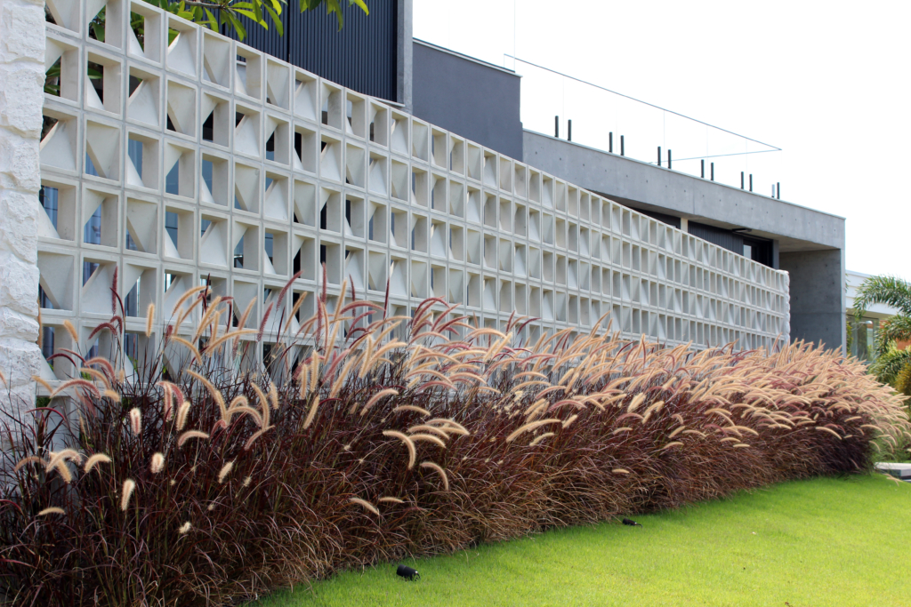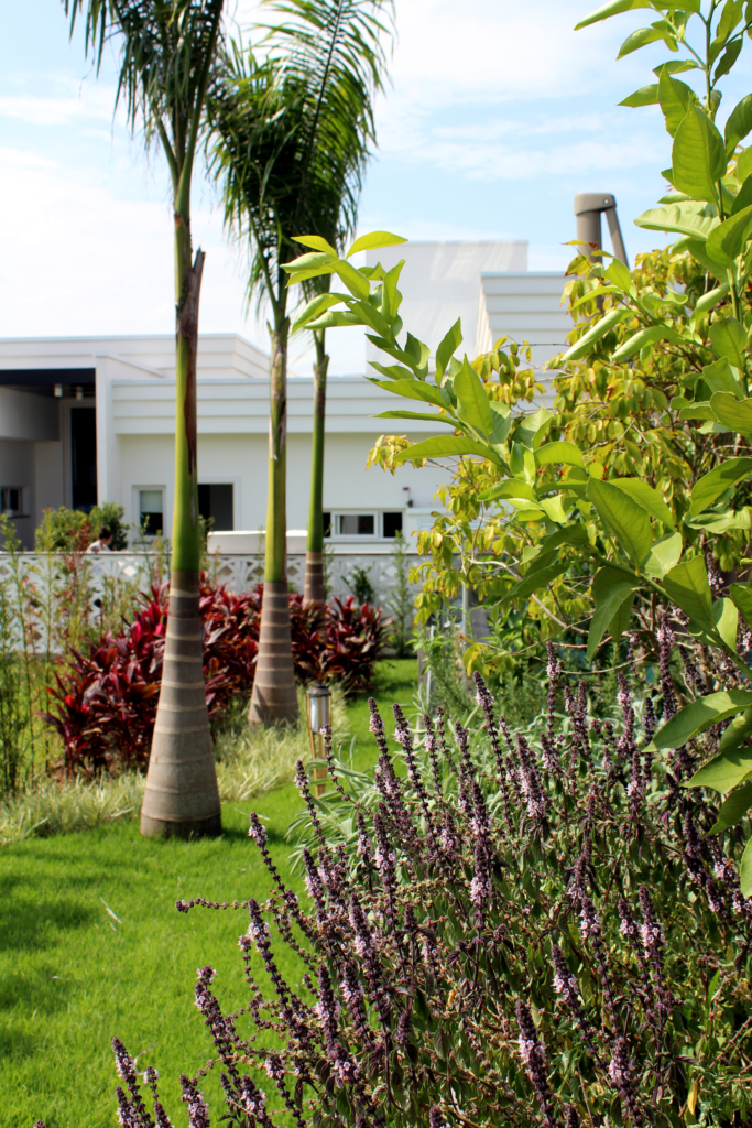 Cacto mandacaru, Capim dos pampas, Capim do texas rubro, Jasmim manga, Samambaia paulista, Dracena cordelyne, Gardênia, Liriope variegato, Palmeira imperial, Grama amendoim, ecotelhado e Irrigação automatizada.