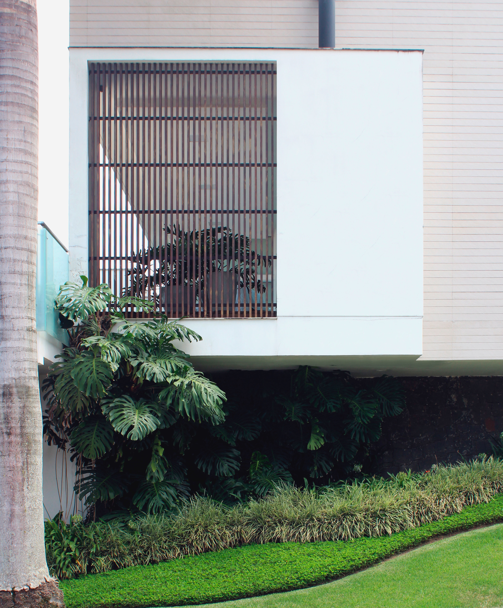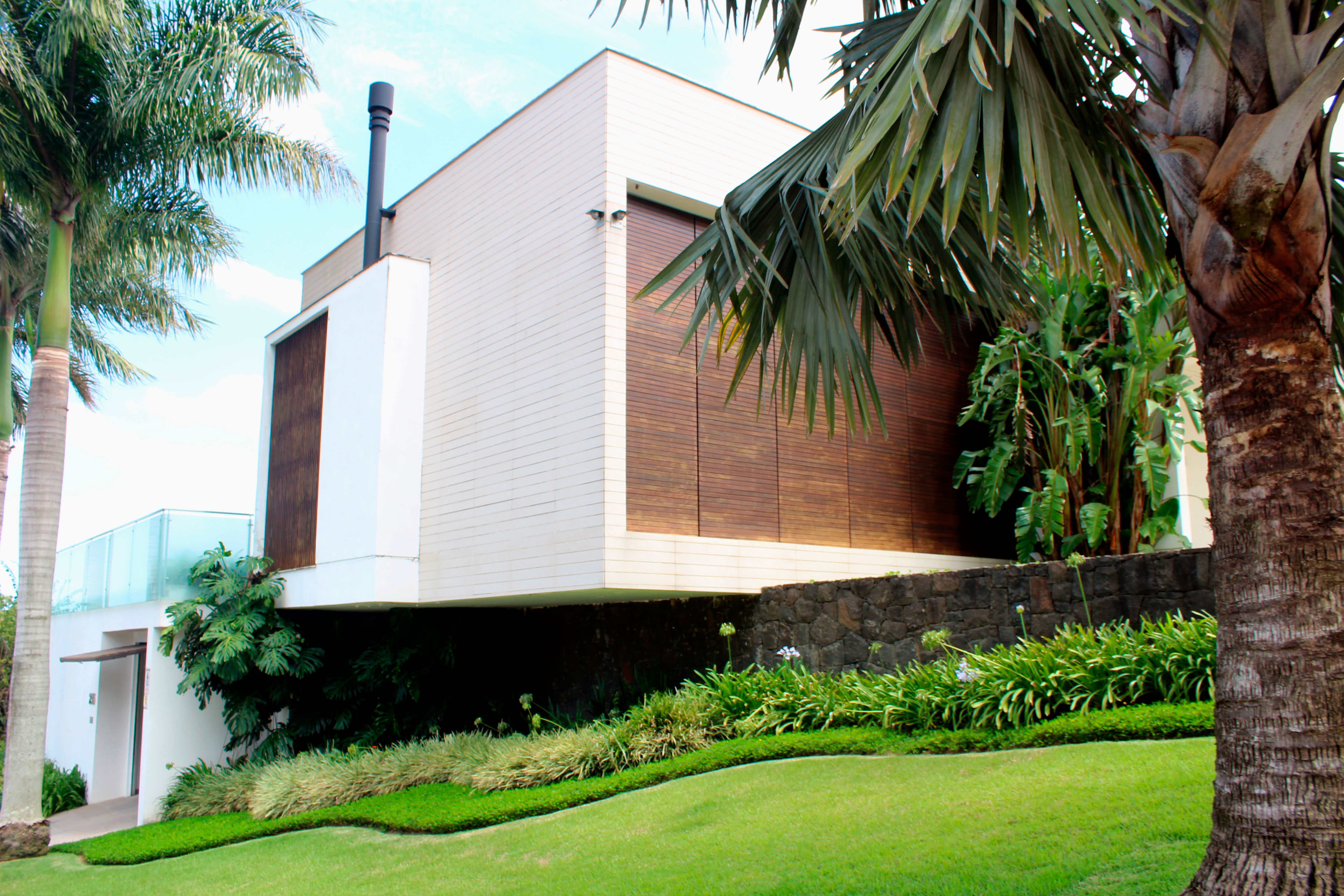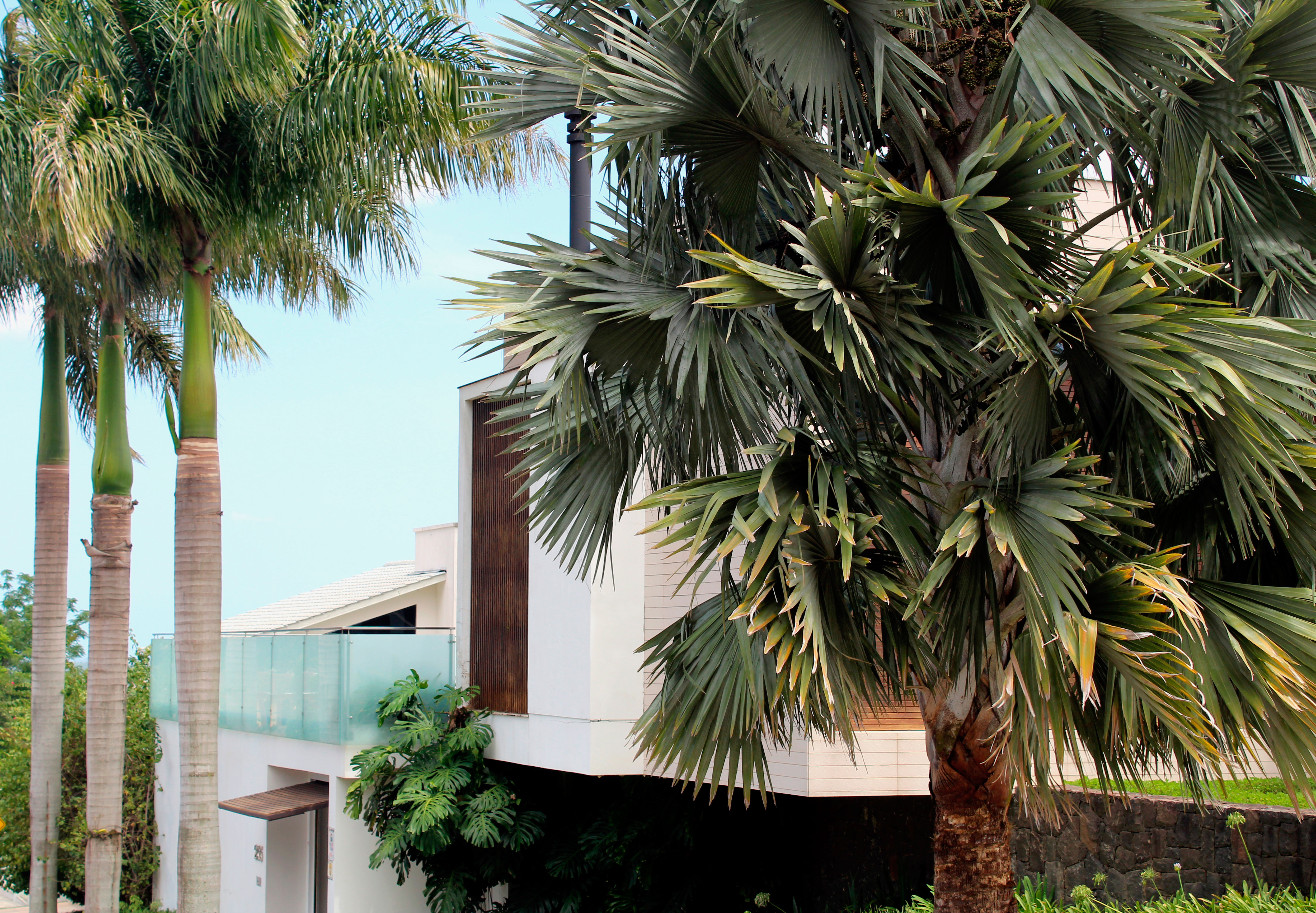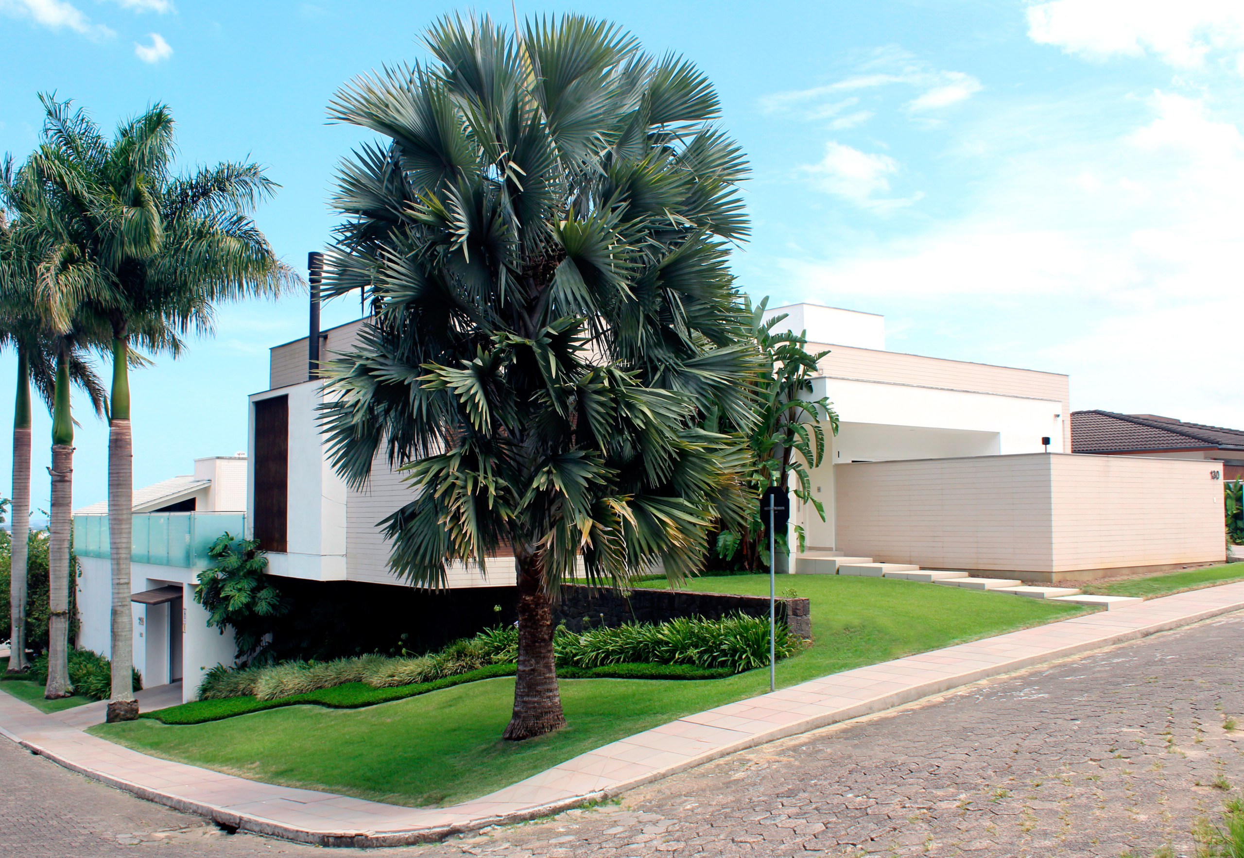 Palmeira azul, agapantus, Liriope variegato, Grama amendoim, Costela de adão, Palmeira imperial