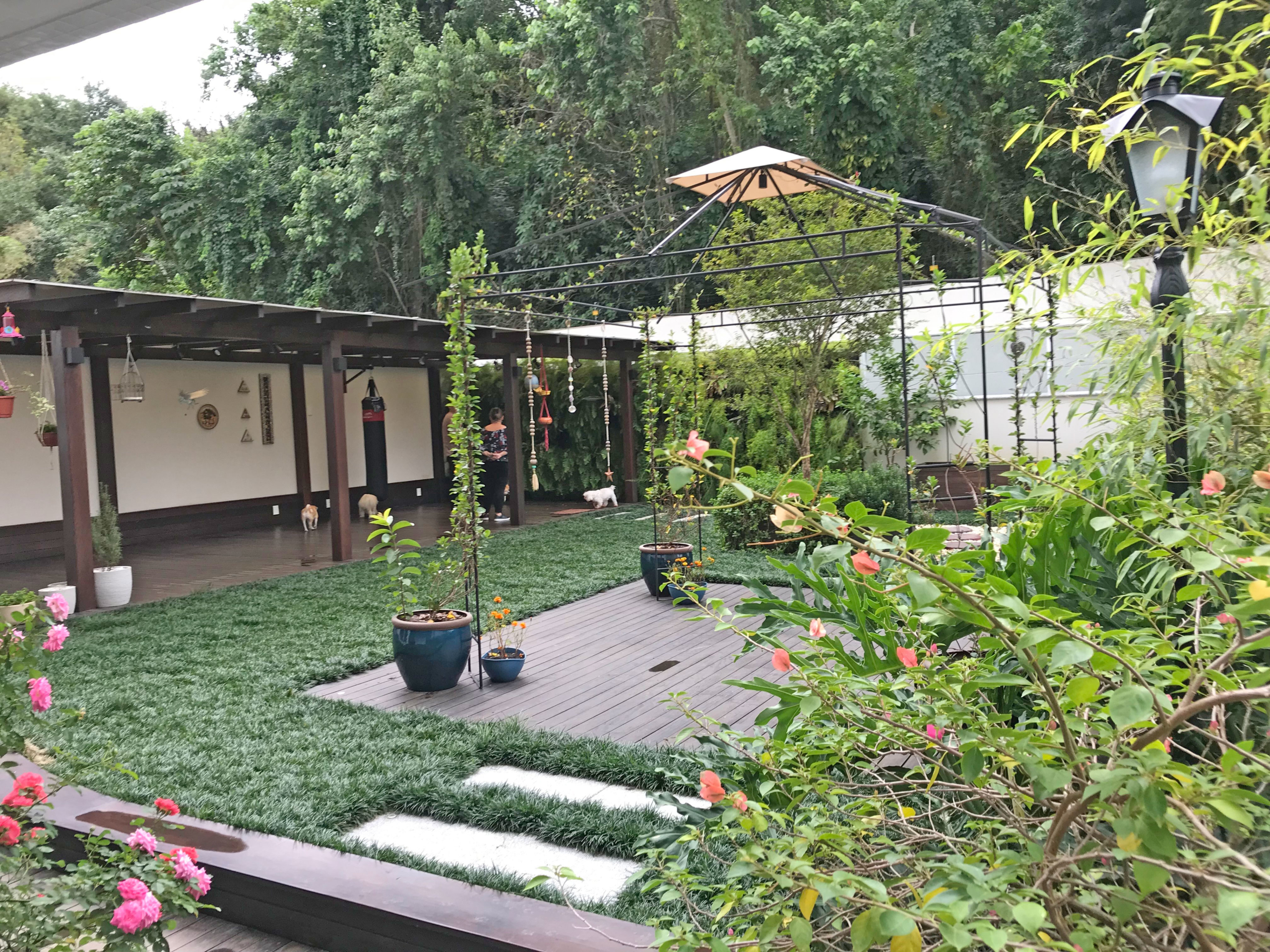 Jaboticabeira, Limão tahiti, Limão siciliano, Acerola, Mini grama preta, Imbé, Bambuza, Mini rosa, Jasmim carolina, Mini pitanga, Aspargo alfinete, Russélia Samambaia e ecotelhado