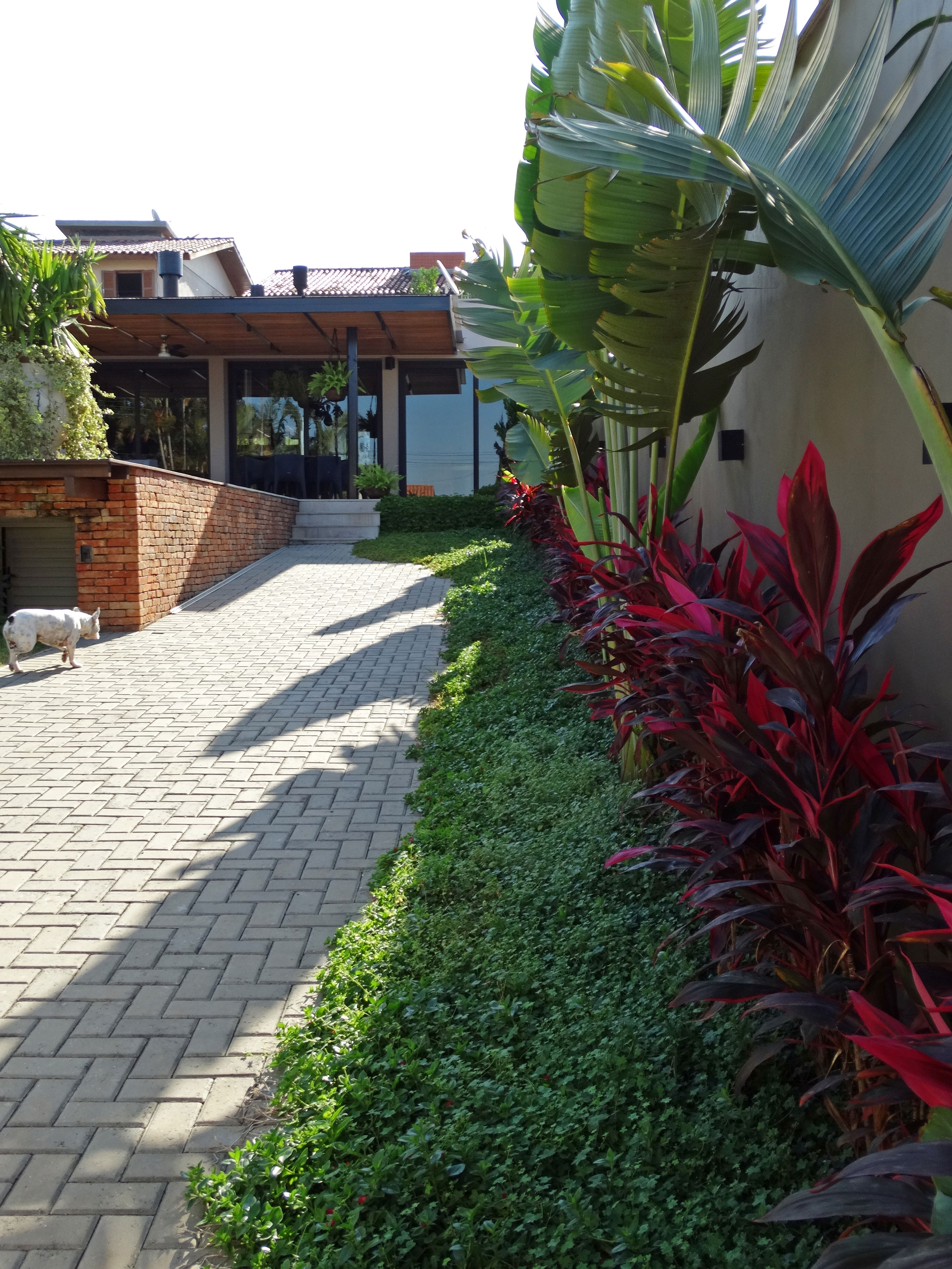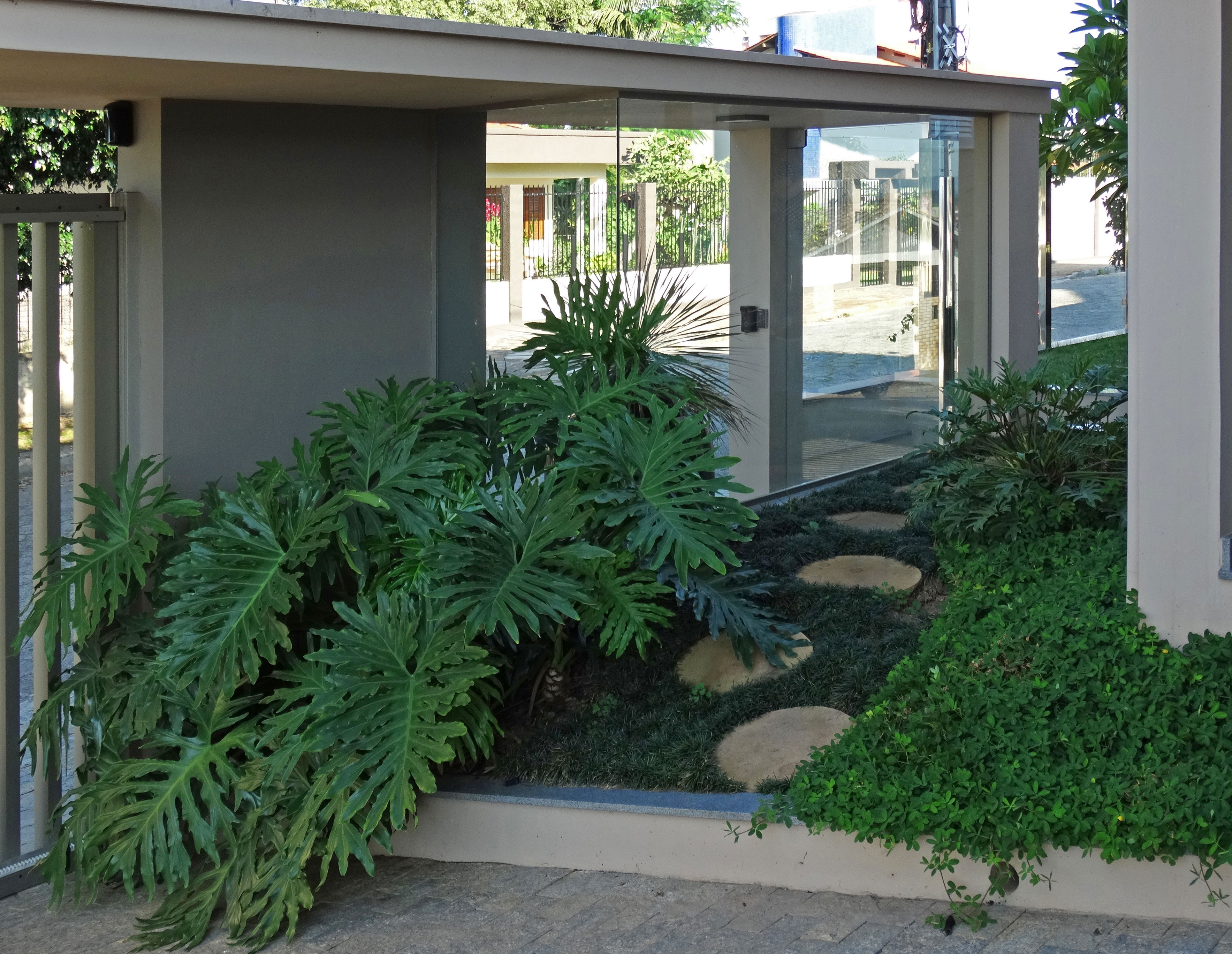 Palmeira carpentária, Imbé, Xanadú, Grama amendoim, Yucca, Hera variegata, Suculentas, Palmeira Ravenalla e dracena cordelyne.